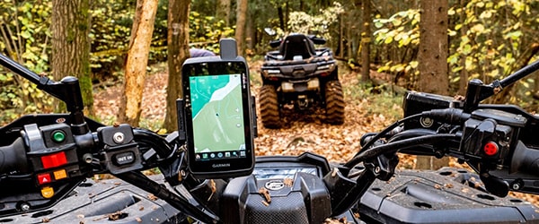 Просто вставьте совместимое устройство - в портретном или ландшафтном режиме - в прочное крепление, чтобы перемещаться на мотоцикле или квадроцикле.