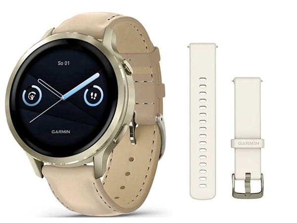 Venu® 4 — 41 мм, лунное золото, с ремешком из силикона цвета костяного слона и ремешком из светло-песочной кожи (010-03013-03):
