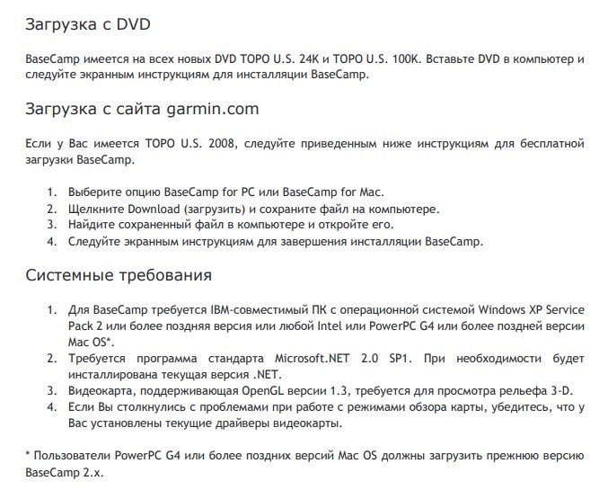 Отправляясь в путешествие с навигатором Garmin, воспользуйтесь программой BaseCamp (современный аналог программы MapSource). Basecamp поможет Вам в просмотре и организации коллекции карт, указании путевых точек, построении маршрутов и отображении треков, а также для передачи этих данных в Ваш прибор Garmin.